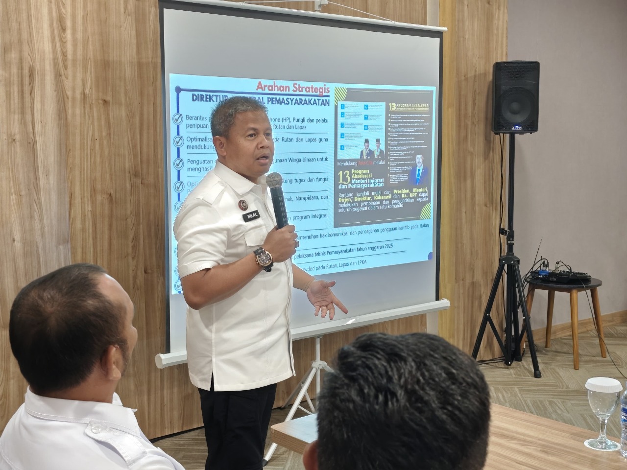 PELAIHARI, INFO_PAS – Direktur Teknologi Informasi dan Kerja Sama Pemasyarakatan (Dirtekforma) Direktorat Jenderal Pemasyarakatan (Ditjenpas), Maulidi Hilal, memberikan arahan langsung kepada jajaran Kepala Unit Pelaksana Teknis (UPT) Pemasyarakatan se-Kalimantan Selatan, Kamis (19/6). Kegiatan berlangsung di Ruang Rapat Cordia Hotel, Bandara Syamsudin Noor, Banjarbaru.