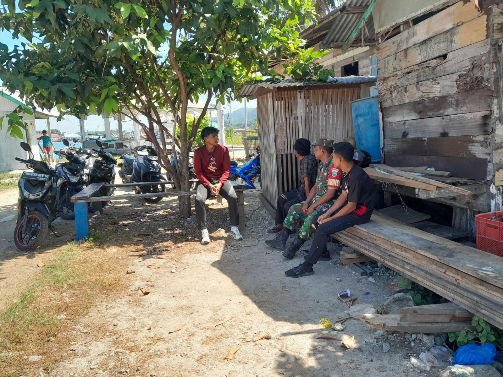 Sambangi Desa Binaan, Babinsa Koramil 02/Lateng Gelar Komsos dengan Pemuda Bangun Semangat Kebangsaan
