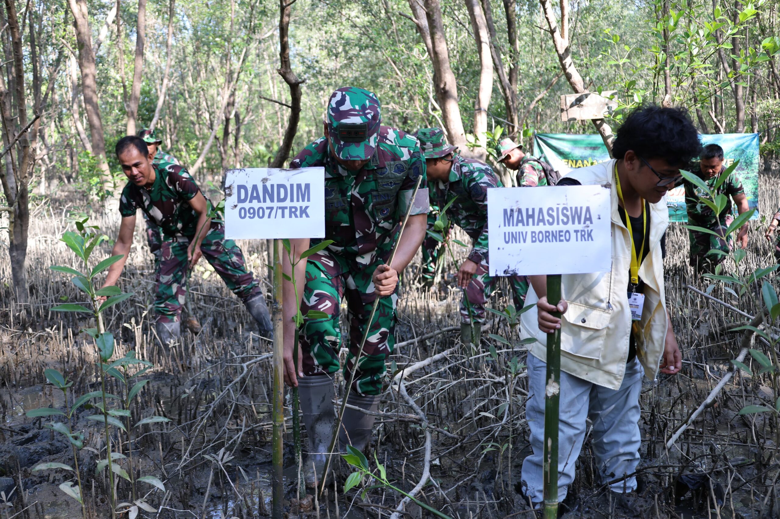 Tarakan – Dalam rangka menyambut HUT Ke – 67 Kodam VI/Mulawarman Personel Kodim 0907/Tarakan menanam 500 bibit mangrove diwilayah Kelurahan Kampung Empat Kecamatan Tarakan Timur,Rabu(02/07/2025)