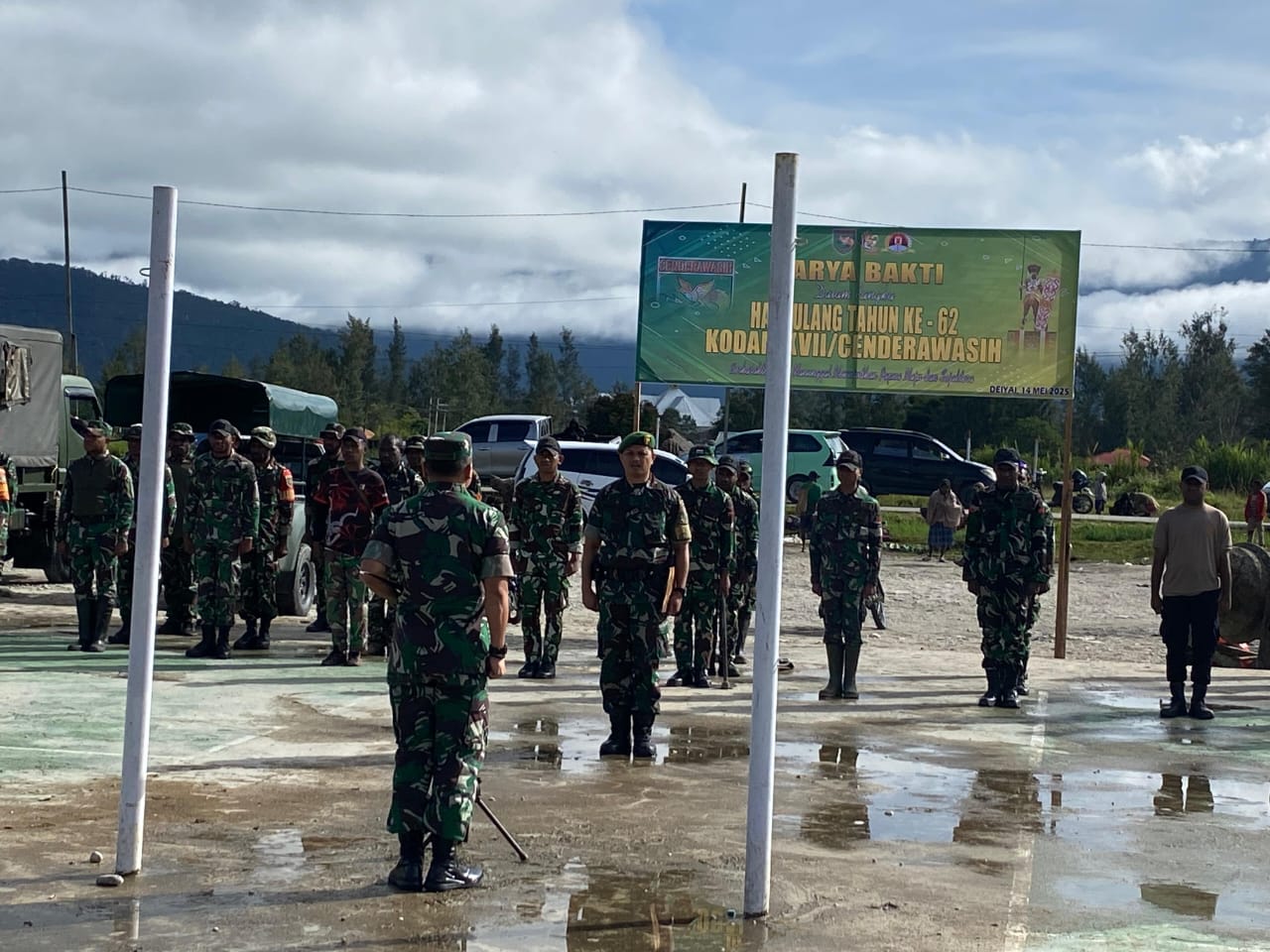 Deiyai – Menyambut Hari Ulang Tahun (HUT) ke-62 Kodam XVII/Cenderawasih, Kodim 1703/Deiyai mengadakan kegiatan karya bakti di Lapangan Thomas Adii dan pasar Wagete , Distrik Tigi , Kabupaten Deiyai, Papua Tengah, Rabu 14/05/2025 .