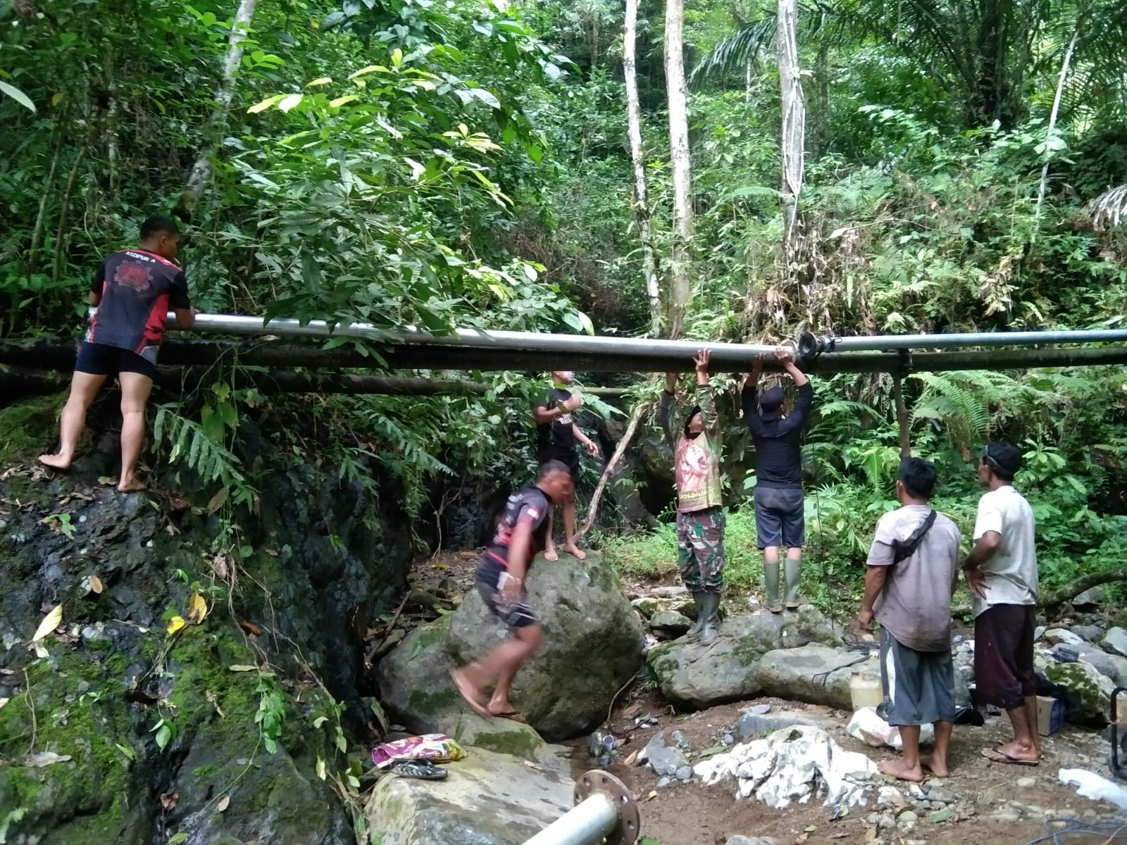 Kegiatan ini merupakan bagian dari sasaran fisik TMMD yang dilaksanakan di wilayah pedalaman Kabupaten Aceh Selatan. Dengan medan yang cukup menantang, personel Satgas bersama warga bahu membahu mengangkut dan menyambung pipa dari sumber air menuju pemukiman penduduk.