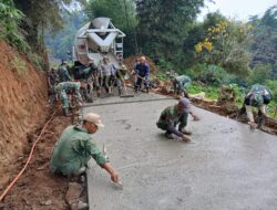 Sukabumi – Program TNI Manunggal Membangun Desa (TMMD) ke-124 yang dilaksanakan oleh Kodim 0607/Kota Sukabumi terus menunjukkan progres yang signifikan. Hingga hari ini, pelaksanaan kegiatan fisik telah mencapai 80 persen. Salah satu sasaran utama yang tengah dikerjakan adalah pengecoran jalan atau rabat beton di wilayah Desa Cisarua, Kecamatan Sukaraja, Kabupaten Sukabumi(Rabu,21/05/2025).