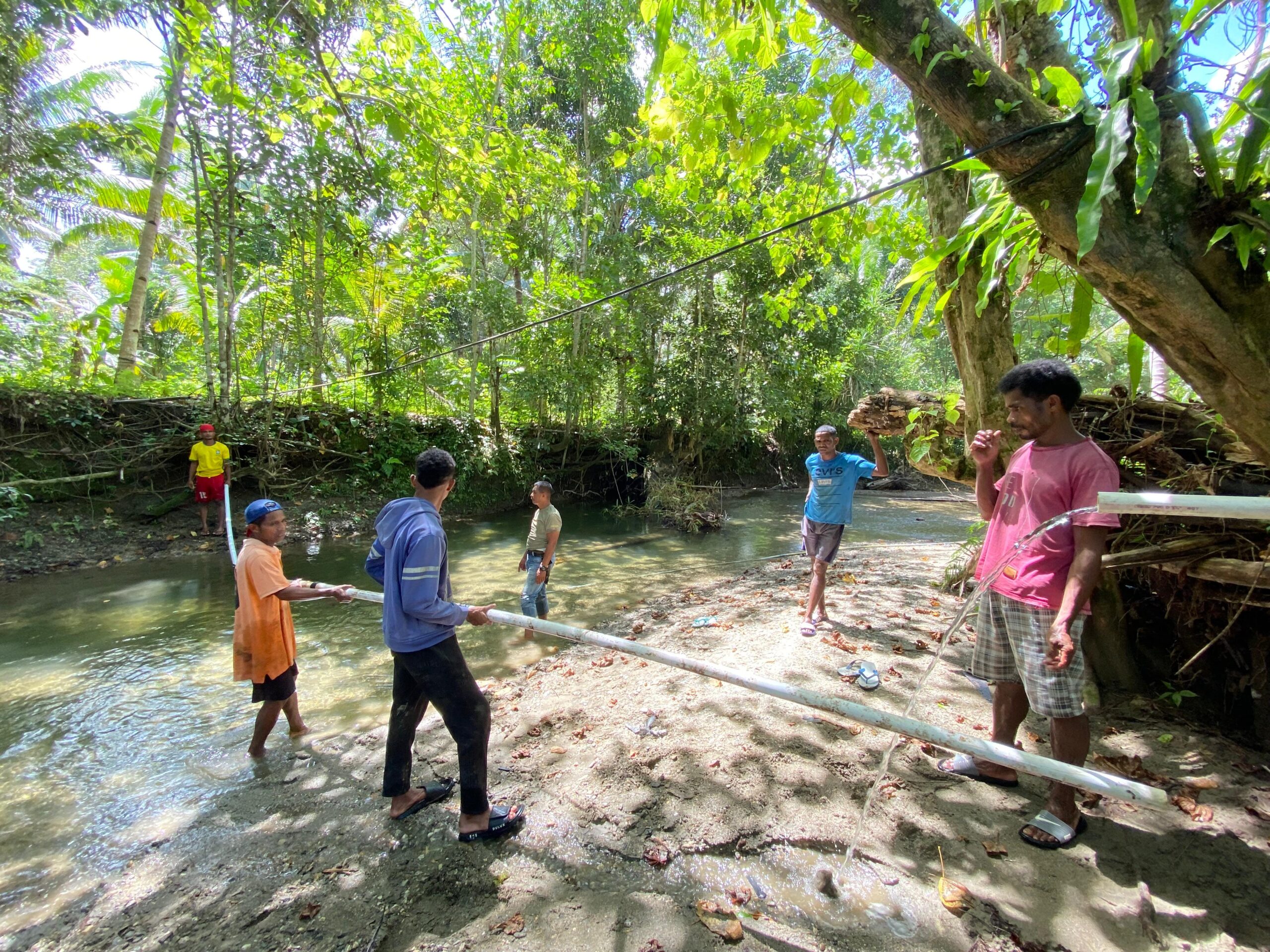 Pemasangan pipa air yang dilaksanakan oleh satgas TMMD dan Masyarakat dilakukan sebagai tahap untuk penyaluran air dari sumber mata air ke bak penampungan air bersih yang nantinya akan di salurkan ke perumahan masyarakat sekitar.