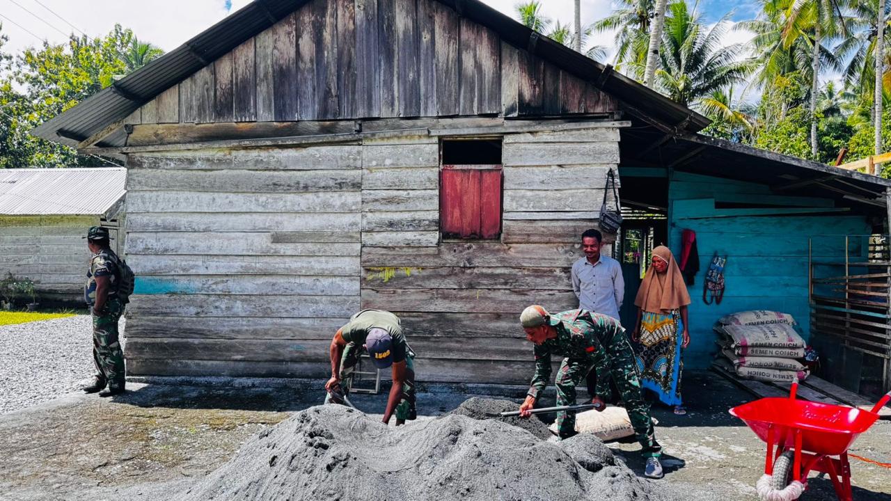Mengejar terget pengerjaan, Satgas TMMD ke 124 Kodim 1502/Masohi terus bekerja cepat membangun Rumah Tidak Layak Huni (RTLH) yang berada di Desa Waraka Kec. Teluk Elpaputih Kab. Maluku Tengah. Jumat (09/05/2025).