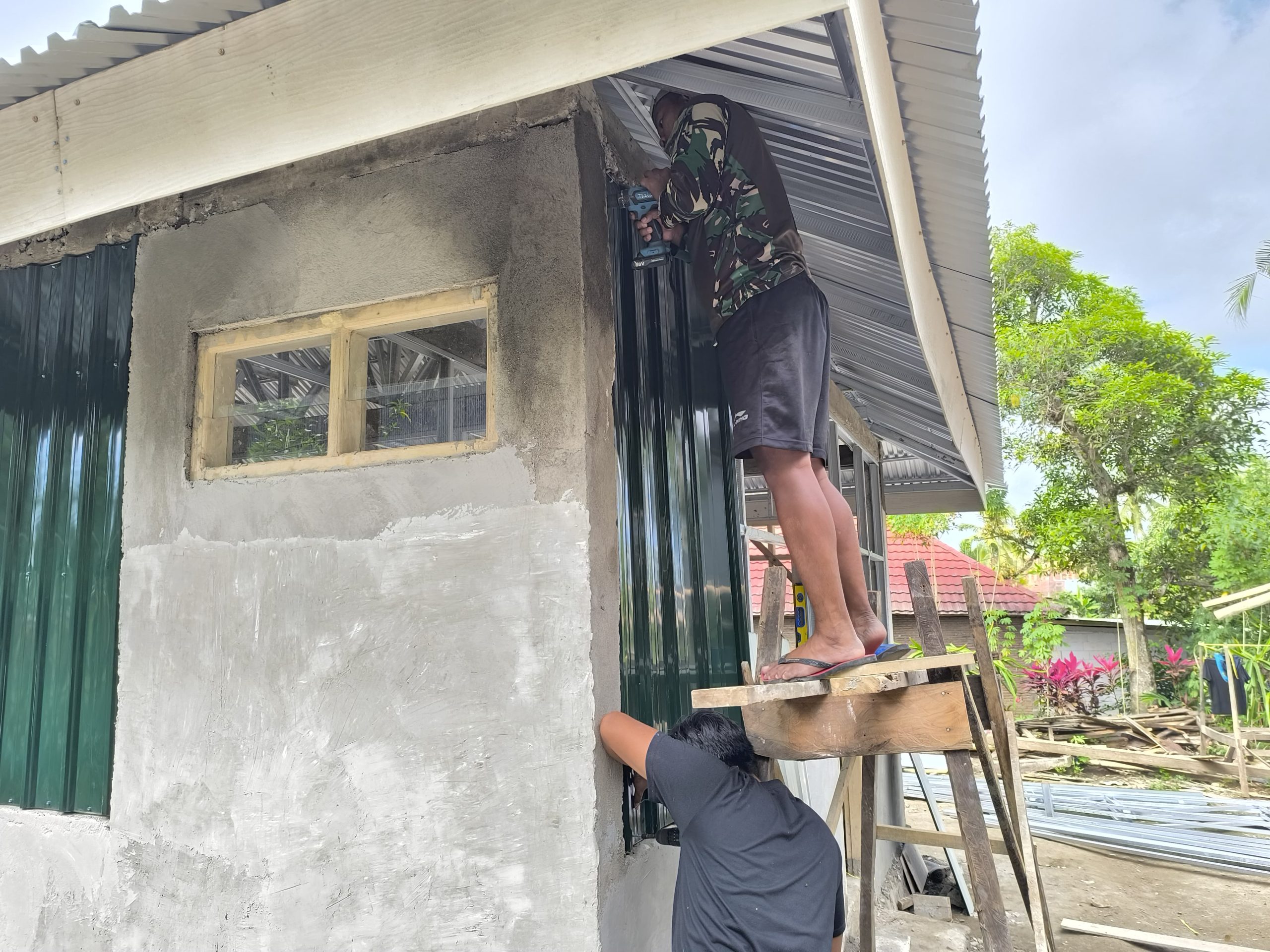 Dengan di hadirkan anggota Satgas TMMD yang ahli tukang bangunan dan dari warga masyarakat yang juga biasa ikut tukang bangunan, supaya bangunan bisa selesai cepat atau tepat waktu sebelum penutupan TMMD. Walaupun cepat dalam pengerjaan, diharapkan tetap mempunyai kualitas yang baik, awet dan nyaman untuk ditempati.