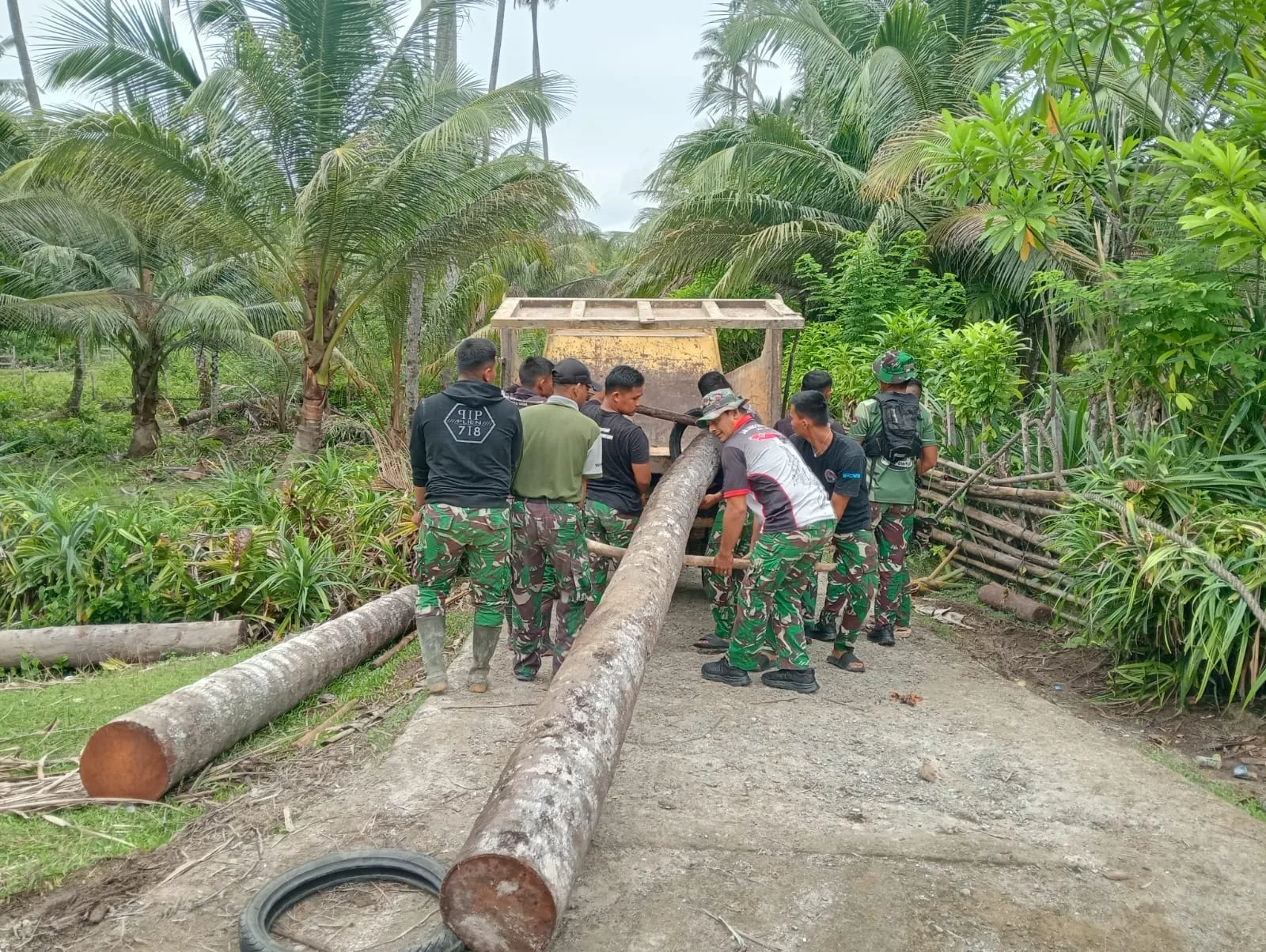 Hal ini terbukti pada pelaksanaan pengerjaan TMMD, masyarakat bersama dengan anggota Satgas TMMD bahu membahu menggenjot pengerjaan sasaran fisik dengan semangat seperti pada dalam pengerjaan contoh pada saat ini bersama menggotong batang kelapa untuk beberapa sasaran fisik.