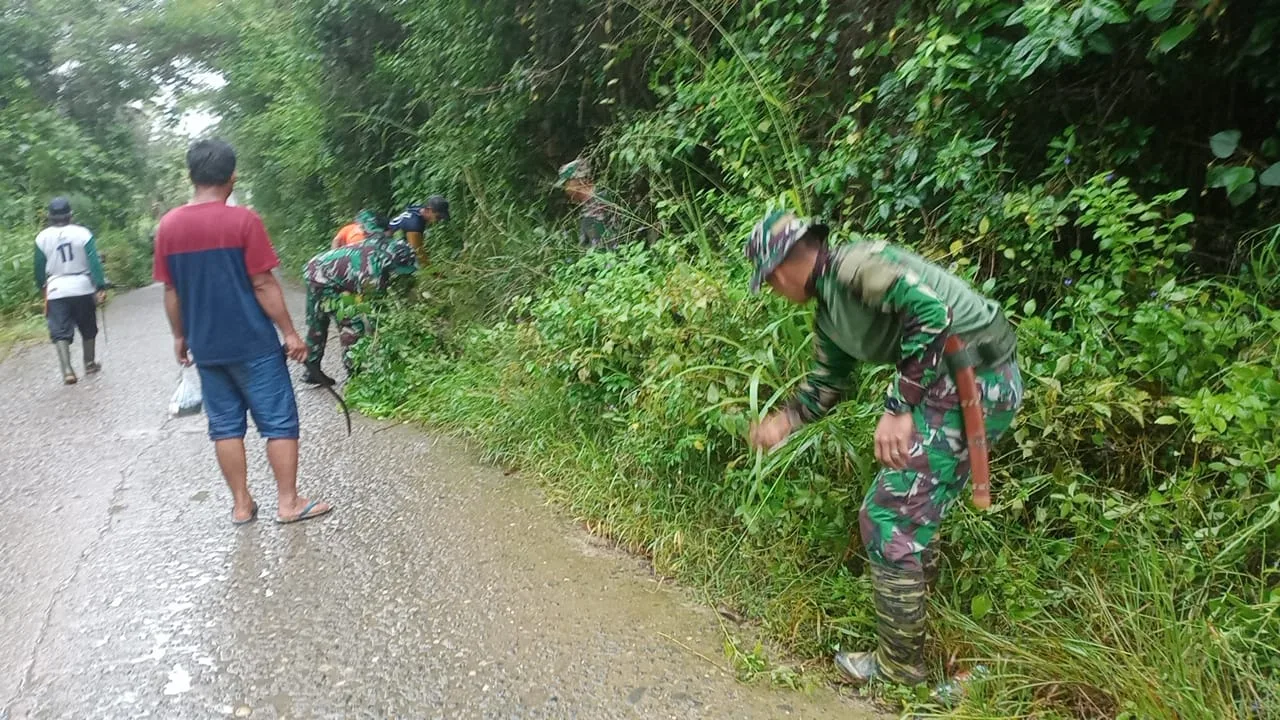 Enrekang — Anggota Koramil 1419-04/Alla bersama pemerintah setempat dan warga Melaksanakan karya bakti pembersihan selokan dari tanah, rumput dan sampah lainnya sepanjang 150 meter di Desa Tallung Tondok Kec. Malua Kab. Enrekang, Rabu 01/10/2025