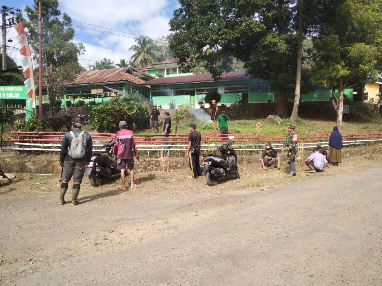 Sinjai. Babinsa Desa Saotengnga Koramil 1424-03/Sinjai Tengah, Sertu Miseng bersama Kepala Desa, Kepala Dusun, Ibu-ibu PKK, serta masyarakat setempat melaksanakan kegiatan kerja bakti dengan sasaran pembersihan kiri dan kanan jalan di Dusun Manimpahoi, Desa Saotengnga, Kecamatan Sinjai Tengah.(25/07/2025)