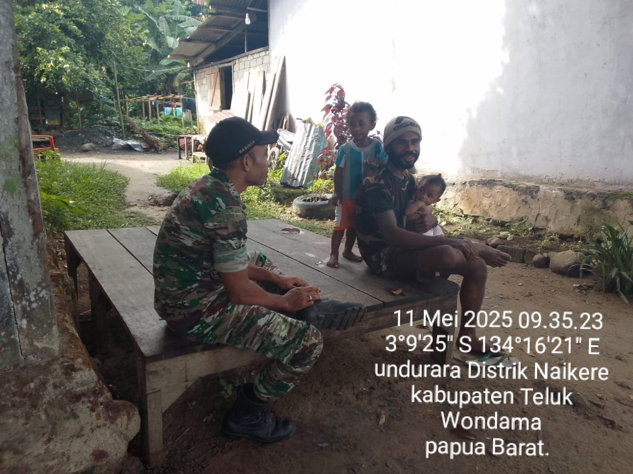 Babinsa Koramil 1811-01/Wasior, Pratu Paul Trapen, menunjukkan komitmen kuat dalam membangun sinergitas antara TNI dan masyarakat dengan menggelar anjangsana di Kampung Undurara, Distrik Naikere, Kabupaten Teluk Wondama, pada 11 Mei 2025.