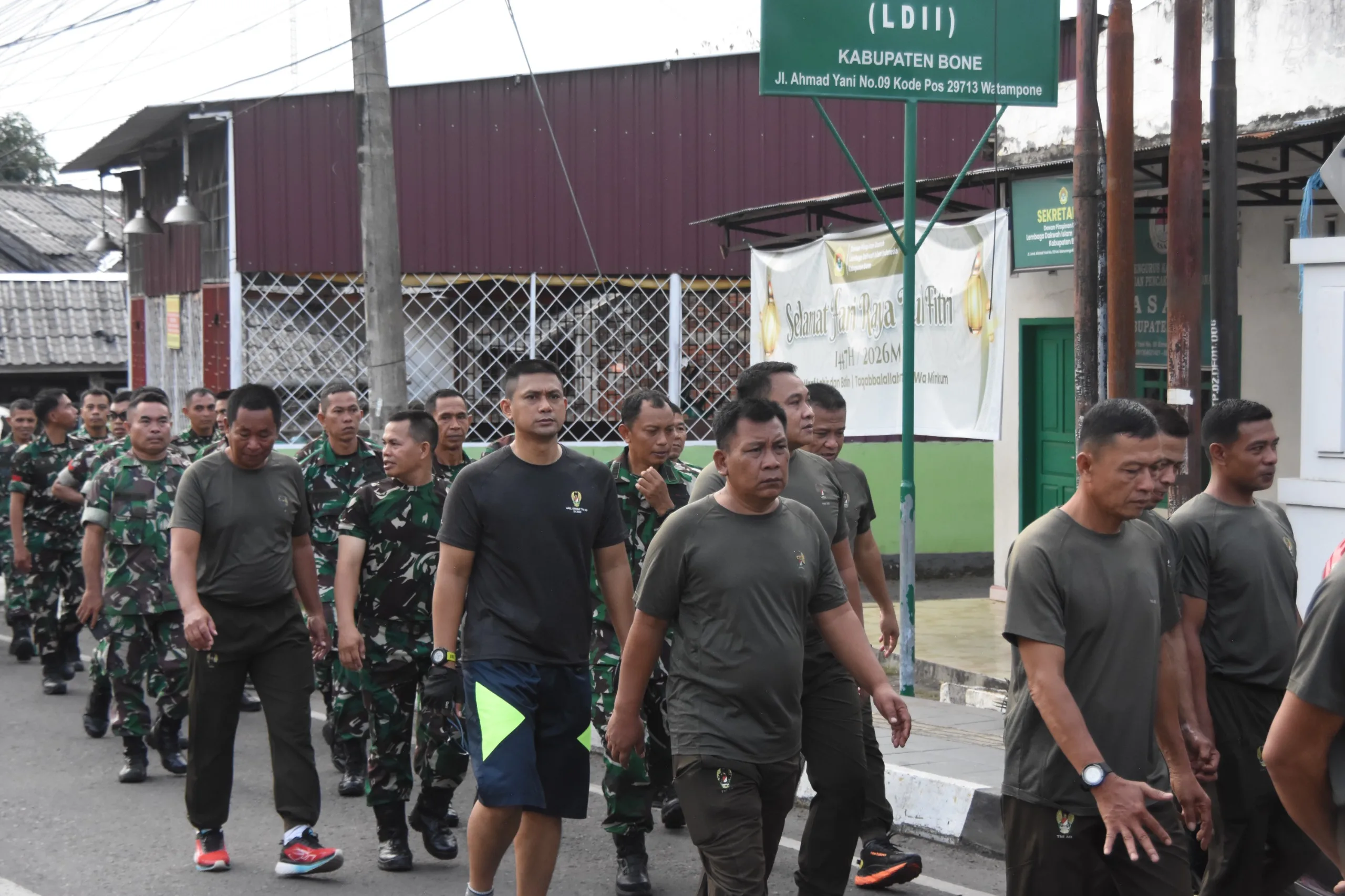 Watampone – Dalam rangka menjaga kebugaran fisik sekaligus mempererat kebersamaan, Personel Korem 141/Toddopuli , Balakrem dan Pegawai Negeri Sipil (PNS) Korem 141/Toddopuli melaksanakan apel pagi gabungan yang dilanjutkan dengan kegiatan olahraga jalan santai, Jumat (27/3/2026).