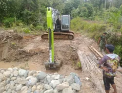 Nagan Raya, Personil yang tergabung dalam satuan tugas (Satgas) TMMD ke 127 Kodim 0116/Nagan Raya melaksanakan pemancangan kayu untuk penmbuatan Box Culvert sebagai media penghubung jalan baru daru Desa Ujung Blang ke Desa Pante Ara Kecamatan Beutong Kabupaten Nagan Raya, (17/02/2026).