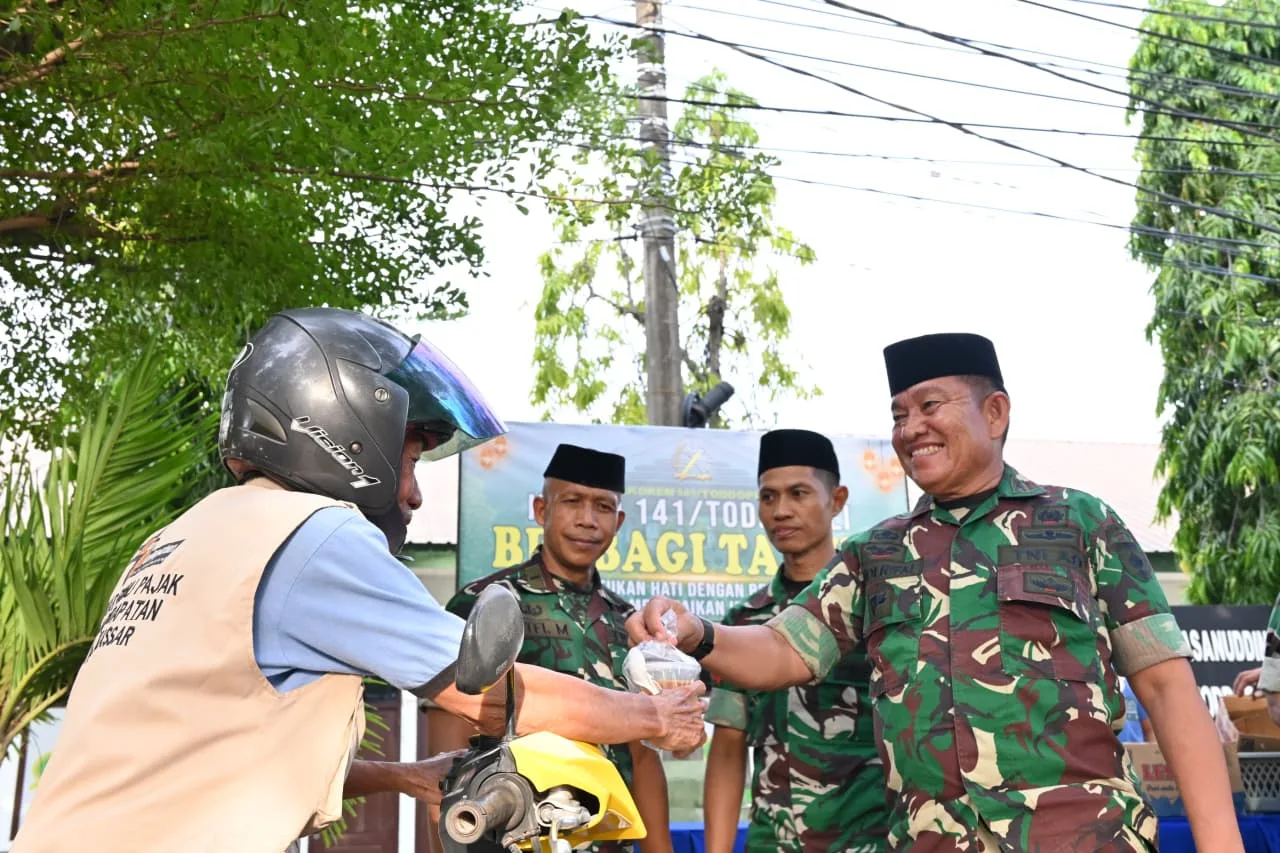 Dalam rangka menyemarakkan bulan Suci Ramadan 1447 H 2026 M, Korem 141/Toddopuli melaksanakan kegiatan berbagi takjil kepada masyarakat pengguna jalan di sekitar Makorem. Jumat, (27/2/2026)