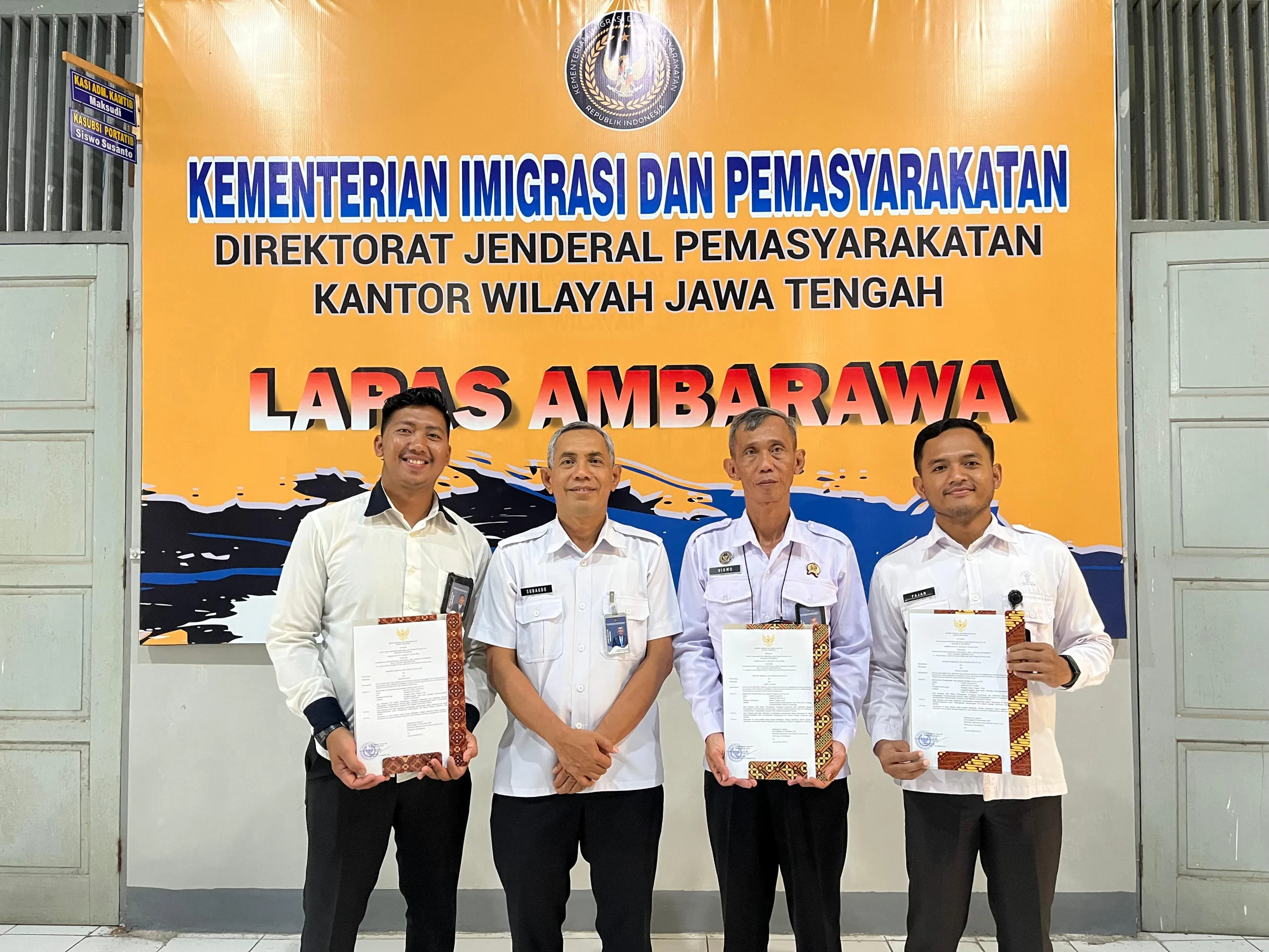 AMBARAWA– Tiga Pegawai Lembaga Pemasyarakatan Kelas IIA Ambarawa menerima Penghargaan Anugraha Wira Wibawa Dharmesti Pratama dalam acara Penandatanganan Nota Kesepahaman antara Kementerian Imigrasi dan Pemasyarakatan dengan Kementerian Kelautan dan Perikanan, Pemberian Penghargaan serta Pembukaan Pembinaan Mental Bagi Pegawai Kementerian Imigrasi dan Pemasyarakatan berpusat di Nusakambangan, rabu (05/11/2025).