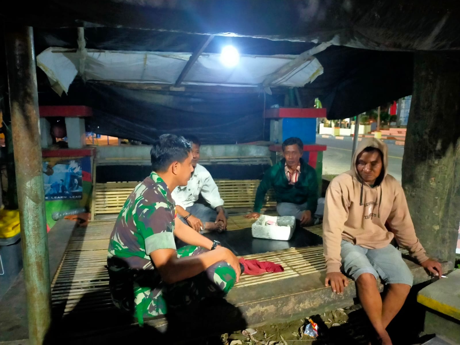 Dalam komsosnya Babinsa Serka Asriantio menyampaikan pesan kepada warga yang melaksanakan kegiatan ronda malam di Poskamling agar selalu waspada dan mengamati lingkungan dengan melakukan patroli guna menjaga situasi agar tetap aman.