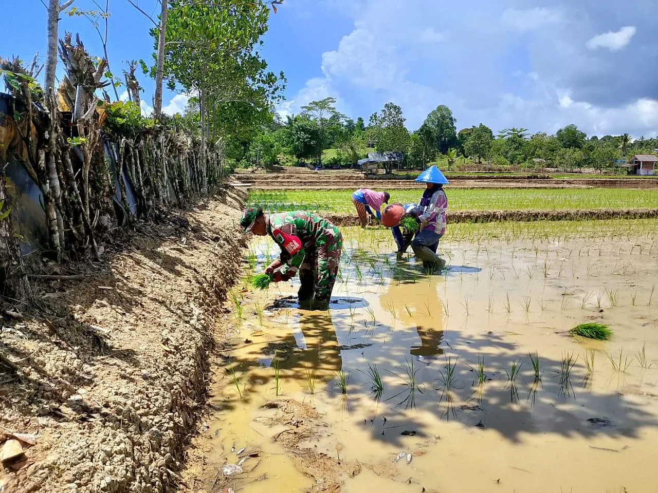“Ini sudah merupakan tugas kami sebagai aparatur kewilayahan membantu para petani dalam hal pertanian, seperti kegiatan tanam padi yang sedang saya kerjakan merupakan wujud kemanunggalan TNI- Rakyat,” ujarnya