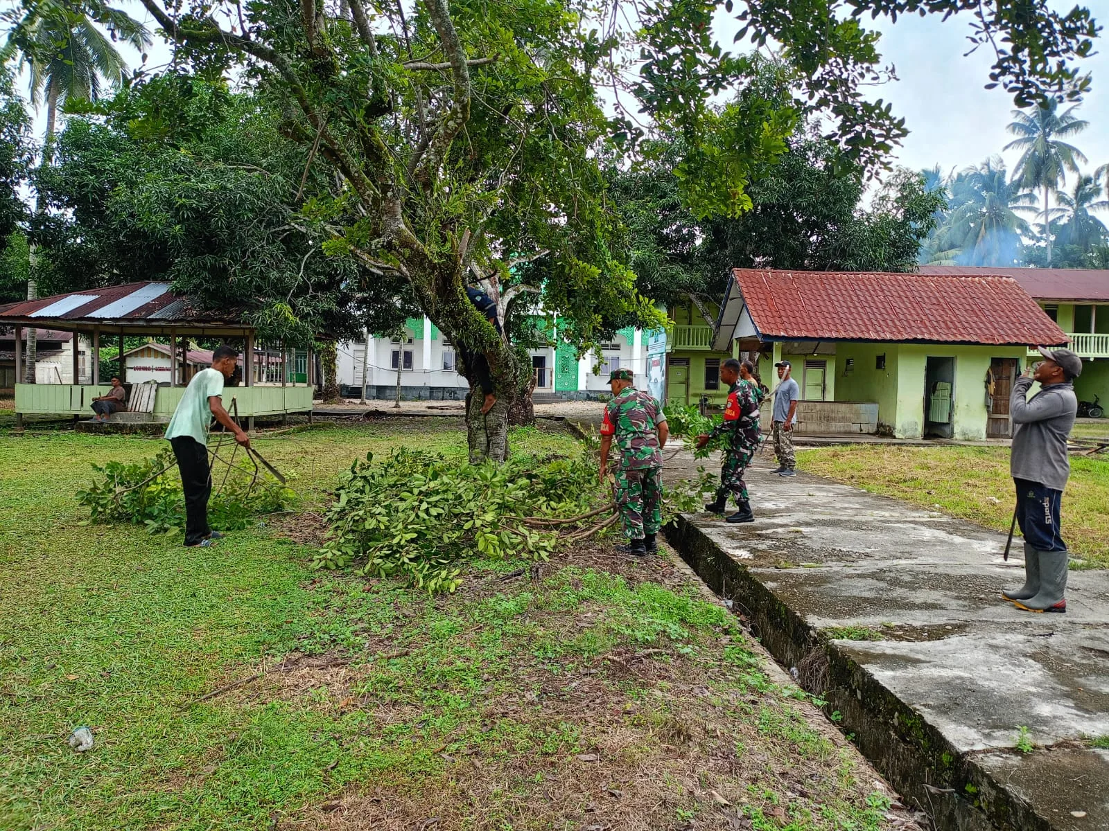 Aceh Selatan – Dalam rangka menyambut peringatan Maulid Nabi Muhammad SAW sekaligus acara haul, Koramil 06/Kluet Utara bersama Polsek Kluet Utara dan masyarakat setempat melaksanakan kegiatan bakti sosial di Pondok Pesantren Darussa’dah yang bertempat di Desa Limau Purut Kecamatan Kluet Utara, Jumat (03/10/2025).