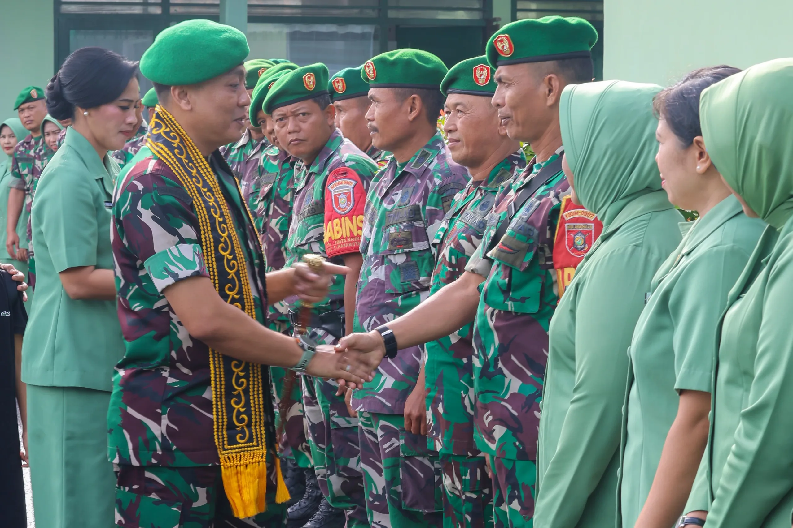 Usia menerima penghormatan pejabat Dandim baru beserta istri memasuki Makodim dengan disambut tradisi tepung tawar dan seluruh anggota Kodim, baik TNI, PNS dan Persit Kartika Chandra Kirana Cabang XIX Kodim 0907/Trk.