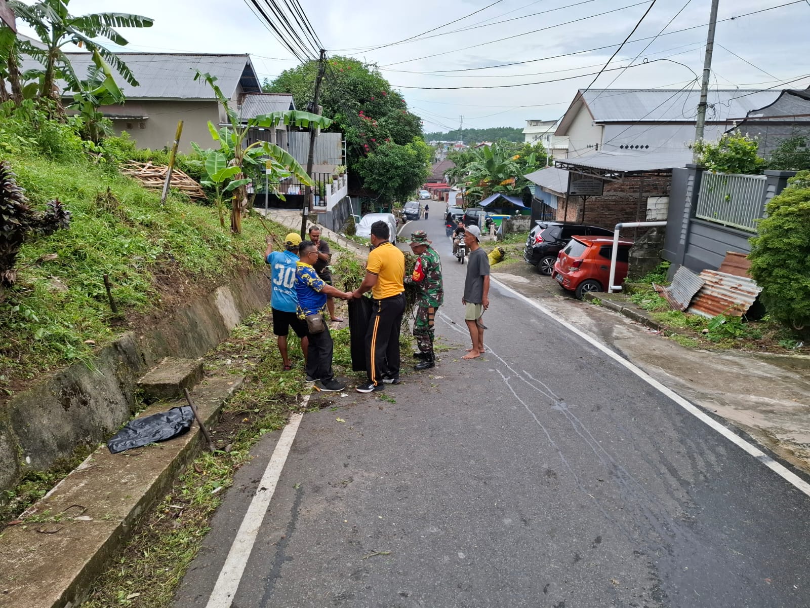 “Kami bersama masyarakat hari ini membersihkan semak belukar dikanan kiri jalan yang sebagian telah menutupi jalan. Ini penting dilakukan agar semua warga yang melintas merasa lebih nyaman, serta suasana lingkungan menjadi lebih rapi dan bersih, ujarnya.