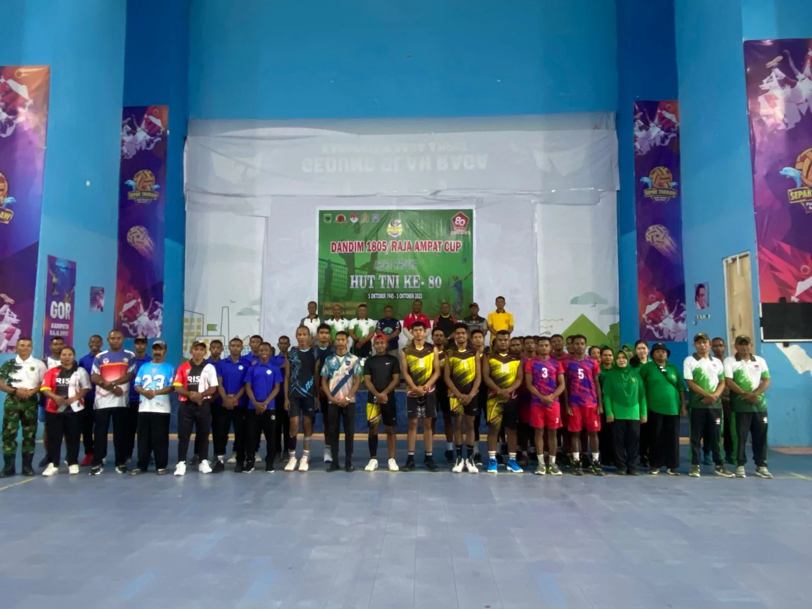 Raja Ampat,PBD– Komandan Kodim 1805/Raja Ampat Letkol Czi Tri Wibowo Angga Astono, yang di Wakili Oleh pasi pers kodim 1805/Raja Ampat kapten Inf Kusno Hutomo membuka secara resmi Turnamen Bola Voli , memperebutkan Piala Dandim Cup, dalam rangka HUT TNI Ke-80.