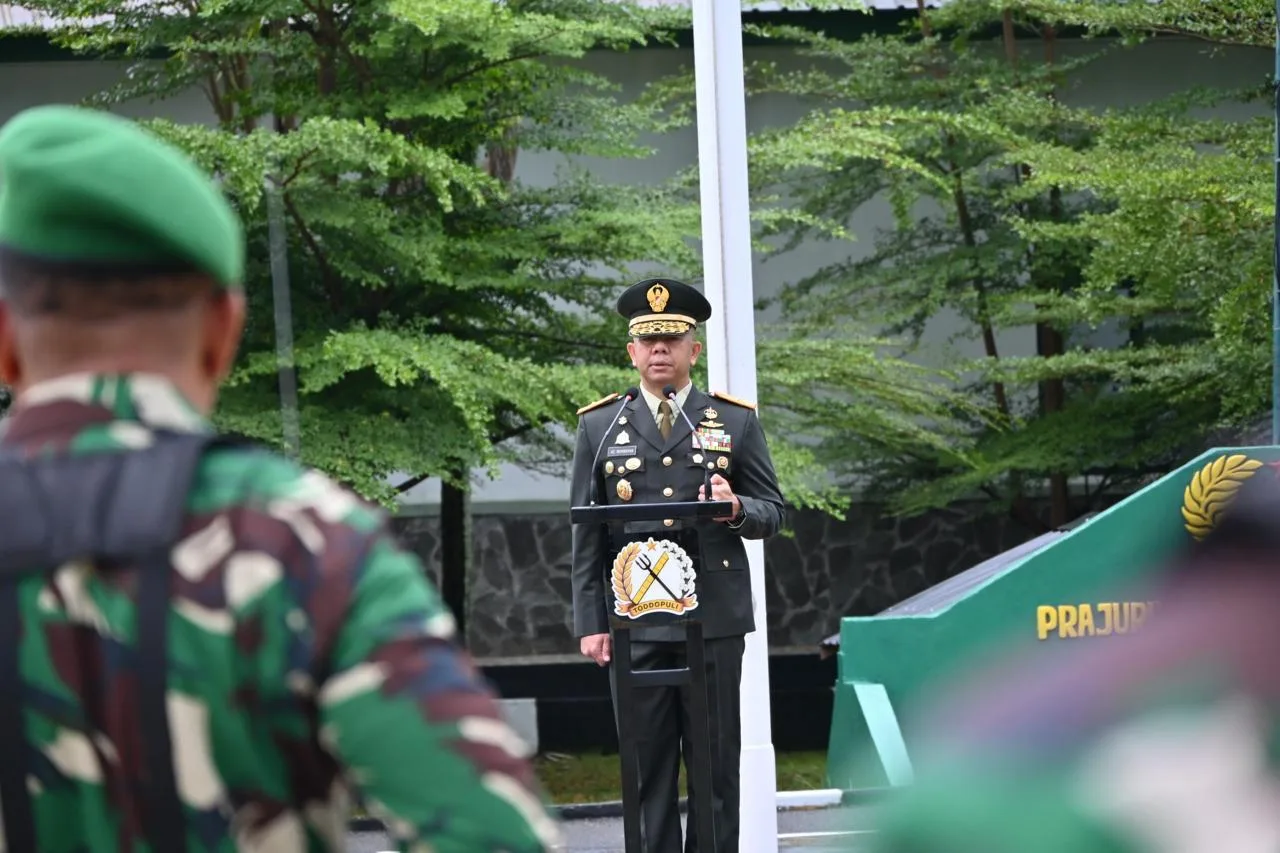 Bone — Korem 141/Toddopuli melaksanakan Upacara Peringatan Hari Bela Negara Ke-77 Tahun 2025 bertempat di Lapangan Apel Makorem 141/Tp. Upacara dipimpin langsung oleh Danrem 141/Toddopuli Brigjen TNI Andre Clift Rumbayan, S.Sos., M.M., Jumat (19/12/2025)