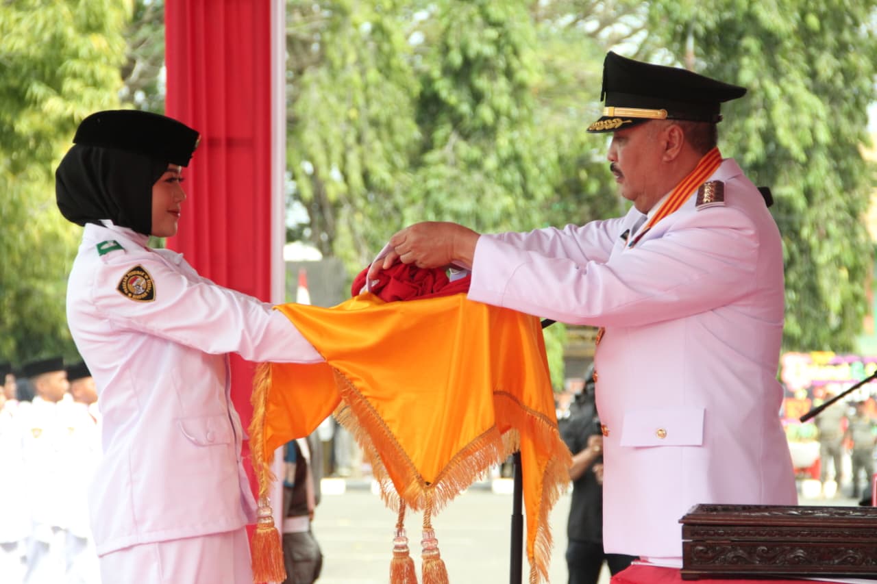 Pasukan Pengibar Bendera Pusaka (Paskibraka) yang terdiri dari putra-putri terbaik Kabupaten Pinrang melaksanakan tugas dengan sempurna. Dentuman lagu kebangsaan “Indonesia Raya” berkumandang, diiringi pengibaran Sang Merah Putih, membuat seluruh peserta terdiam khidmat dan memberi hormat.