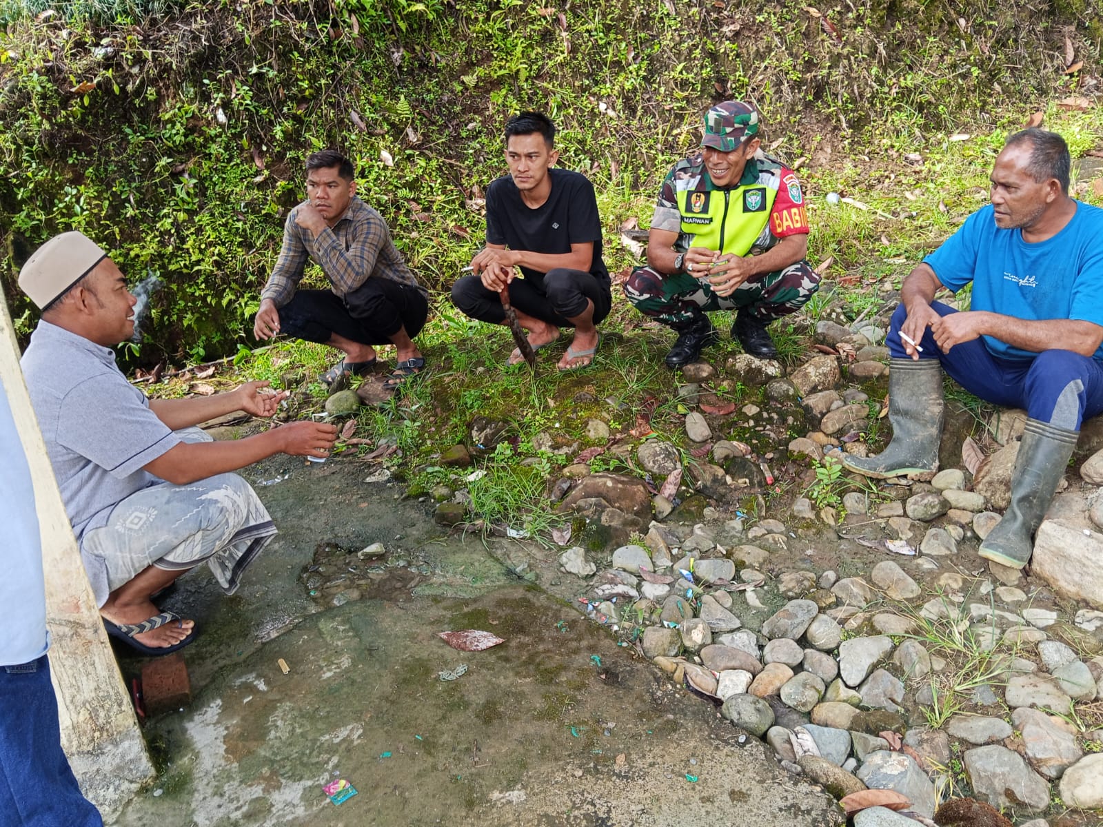 Pidie — Memanfaatkan waktu luang setelah kegiatan gotong royong membersihkan tempat ibadah, Babinsa Koramil 17/Geumpang Kodim 0102/Pidie, Sertu Marwan, melaksanakan komunikasi sosial (Komsos) bersama warga Desa Bangkeh, Kecamatan Geumpang, Kabupaten Pidie, Minggu (13/07/2025).