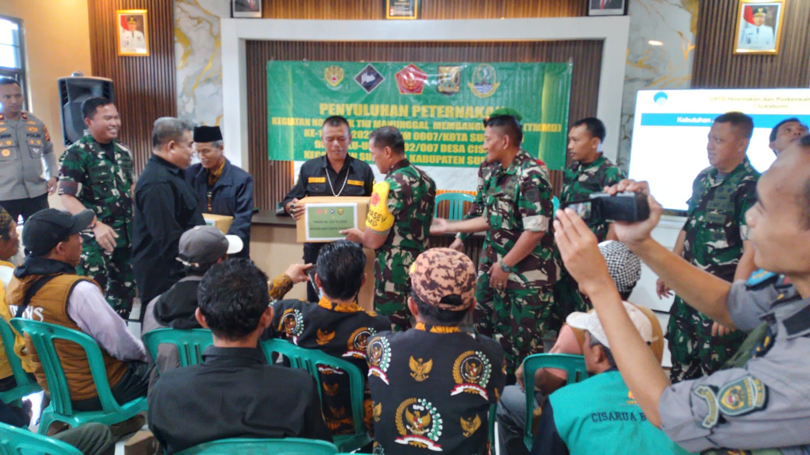 Didampingi oleh Kasrem 061/Suryakencana, Kasiter Kasrem 061/Suryakencana, serta unsur pejabat dari Pemerintah Daerah Kabupaten Sukabumi dan Wakapolres Sukabumi Kota yang mewakili Kapolresta Sukabumi, kunjungan ini dirangkaikan pemberian Sembako kepada masyarakat di lokasi TMMD sebagai bentuk kepedulian terhadap warga.