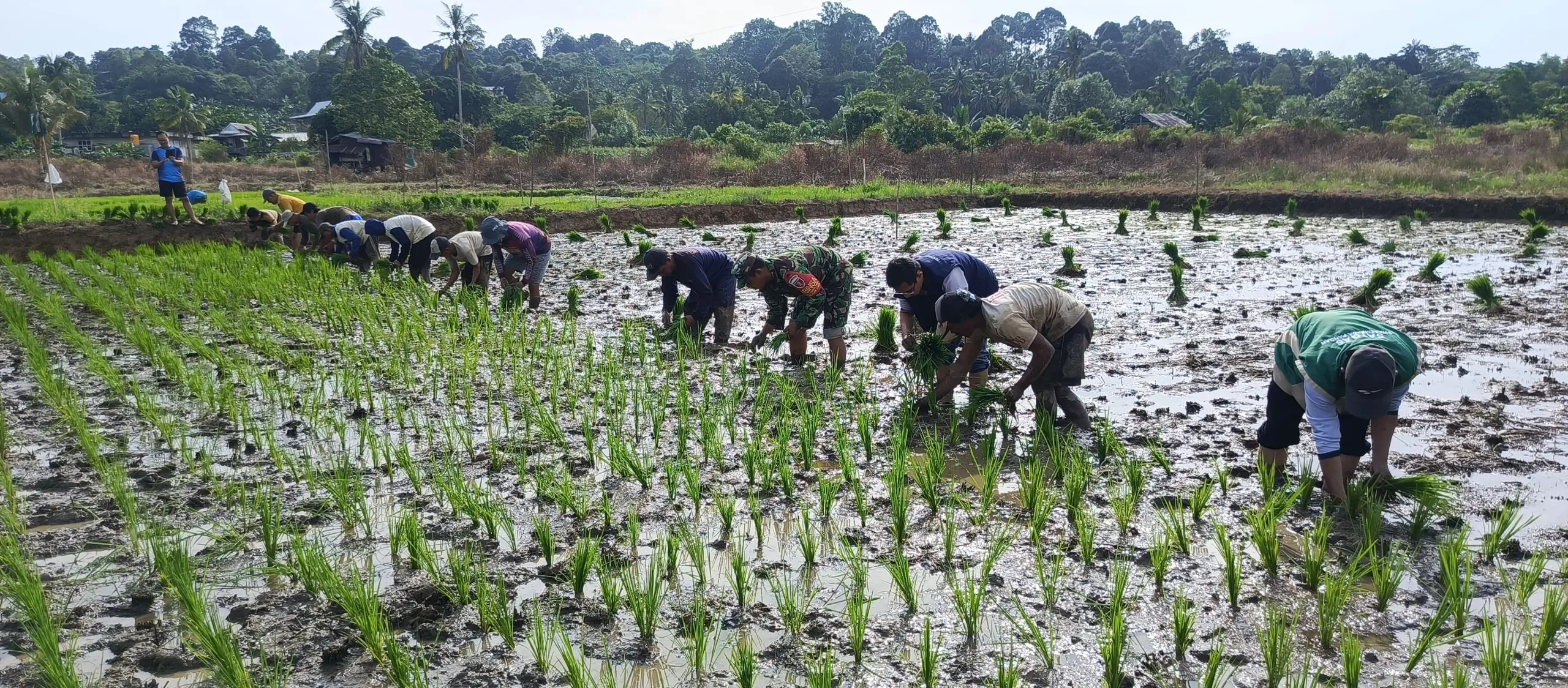 Wujud Dukungan Progam Han Pangan,Babinsa Koramil 0907/01 Tartim Bantu Warga Tanam Padi