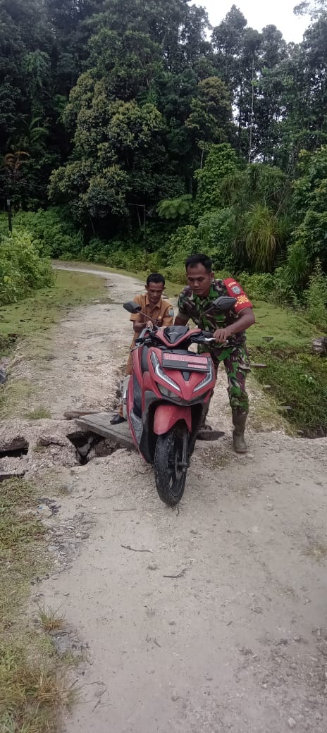 Membantu warga masyarakat tersebut merupakan tugas TNI dalam membantu masyarakat, seperti yang dilakukan Babinsa dengan hati-hati memegang kendaraan warga yang hendak melewati jembatan rusak.