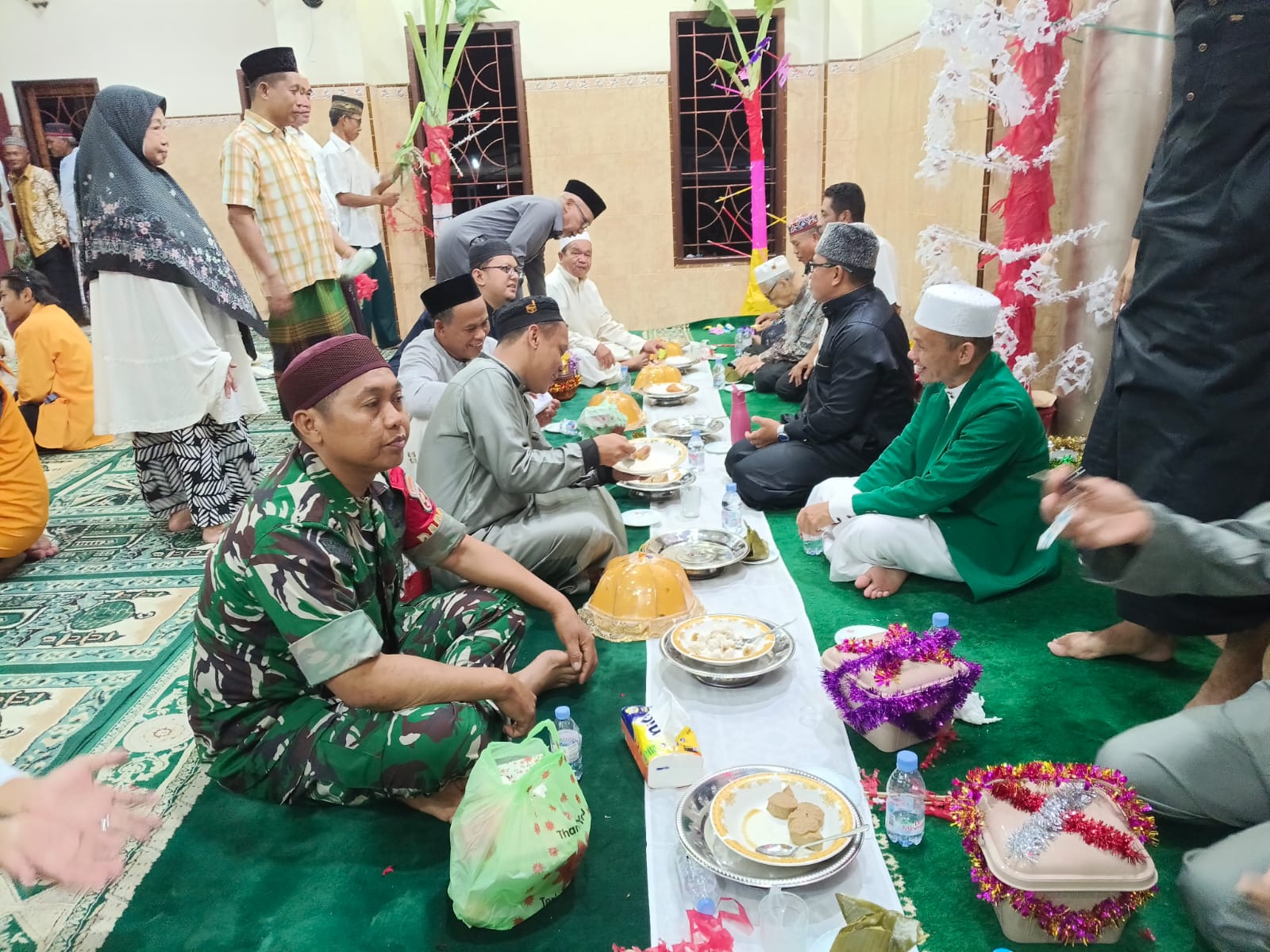 KODIM 1405/PAREPARE – Demi Terwujudnya Rasa Kebersamaan Dan menjalin silaturahmi Dengan warga Binaannya, Babinsa Koramil 1405-01/Ujung, Serda Ridwan menghadiri acara peringatan Maulid Nabi Muhammad SAW 1447 Hijriah/2025 Masehi yang digelar Di Mesjid Qiblatain di RW 3 / RT 1 Kelurahan Sumpang Minangae, Kecamatan Bacukiki Barat, Kota Parepare. Minggu (14/09/2025)