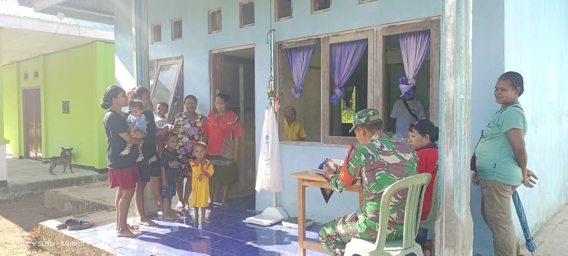 Sertu Tri Djane menyampaikan Kegiatan posyandu ini merupakan program rutin yang dilaksanakan oleh petugas kesehatan yang dibantu oleh kader PKK, yang ditugaskan membantu untuk mengontrol kesehatan Balita dan Ibu hamil yang ada di kampung kalisade.