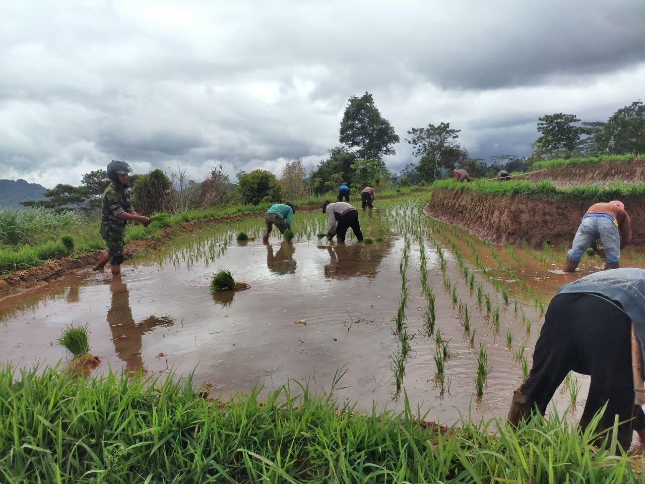 Kegiatan pendampingan ini dilakukan sebagai bentuk dukungan TNI terhadap para petani, khususnya dalam memanfaatkan musim hujan dan sistem irigasi yang tersedia untuk mempercepat masa tanam. Kehadiran Babinsa di tengah-tengah petani juga bertujuan untuk memberikan arahan teknis sekaligus mendorong efisiensi dalam proses tanam padi.