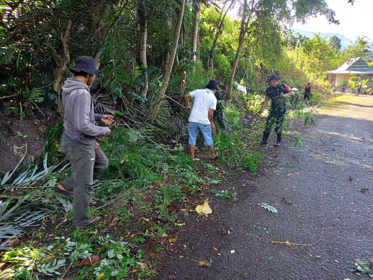 Enrekang _ Wujudkan hidup sehat dan eratkan hubungan yang baik dengan warga binaan, Personil Koramil 03/Baraka yang di Pimping Ba Tuud Peltu Arsyad Melaksanakan karya bakti pembersihan selokan dari tanah, rumput dan sampah lainnya sepanjang 150 meter di Desa. Langda Kec. Buntu Batu Kab. Enrekang, Senin (06/10/2025).