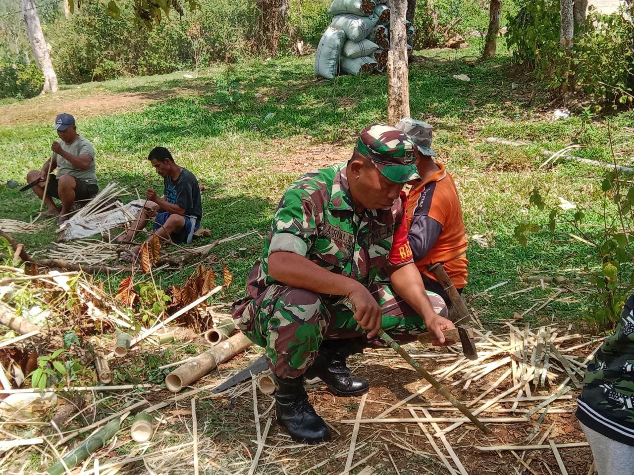 Sinjai – Babinsa Desa Palangka, Koramil 1424-05/Sinjai Selatan, Serda Asri Majid melaksanakan kegiatan komunikasi sosial dengan membantu warga dalam menyiapkan sarana pesta pernikahan di Dusun Baru, Desa Palangka, Kecamatan Sinjai Selatan, Kabupaten Sinjai. Kegiatan ini dilakukan sebagai bagian dari pemantauan wilayah sekaligus mempererat hubungan antara TNI dan masyarakat, Senin (7/4/2025).